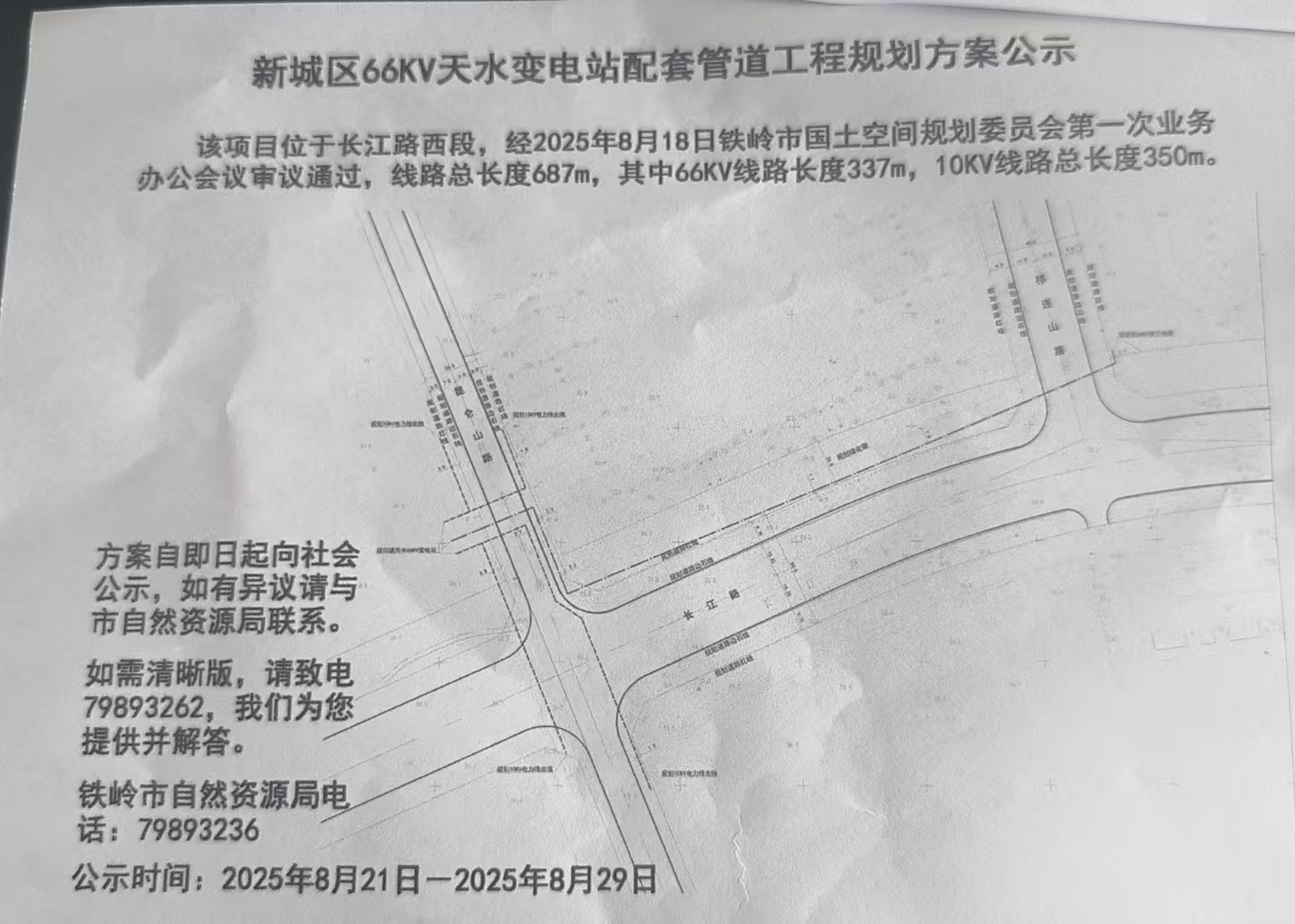 新城区66KV天水变电站配套管道工程规划方案公示