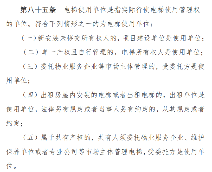 图2:《特种设备使用单位落实使用安全主体责任监督管理规定》中对电梯使用单位的判定