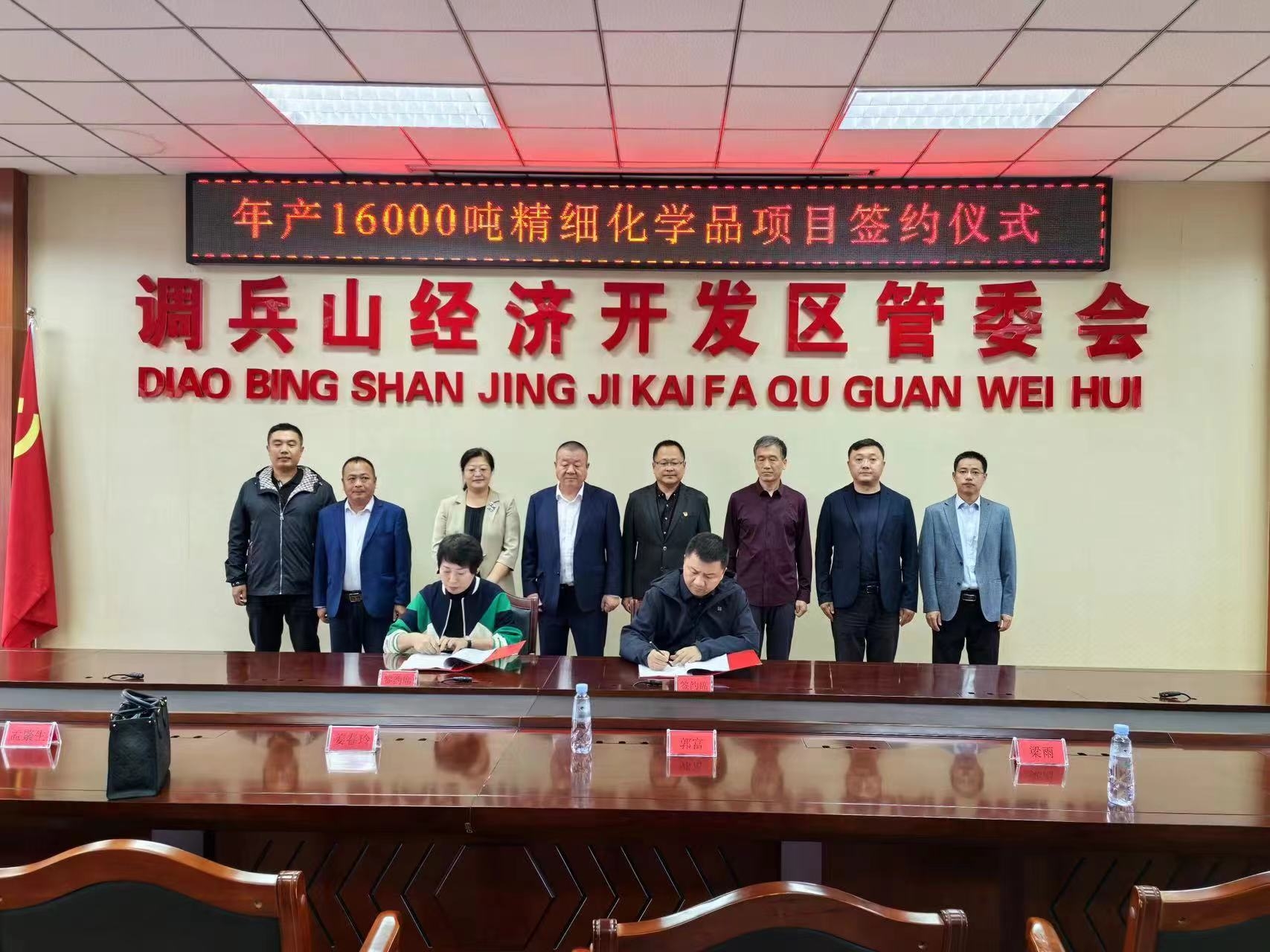 近日,丹东江和新材料有限公司总投资1亿元的年产16000吨精细化学品项目签约仪式在调兵山市举行。经济开发区党工委副书记、经济开发区管委会主任高放、副主任冯鑫涛、王辉、张健、刘兵;江和新材料有限公司董事长姜春玲、总经理郭富等共同见证签约。