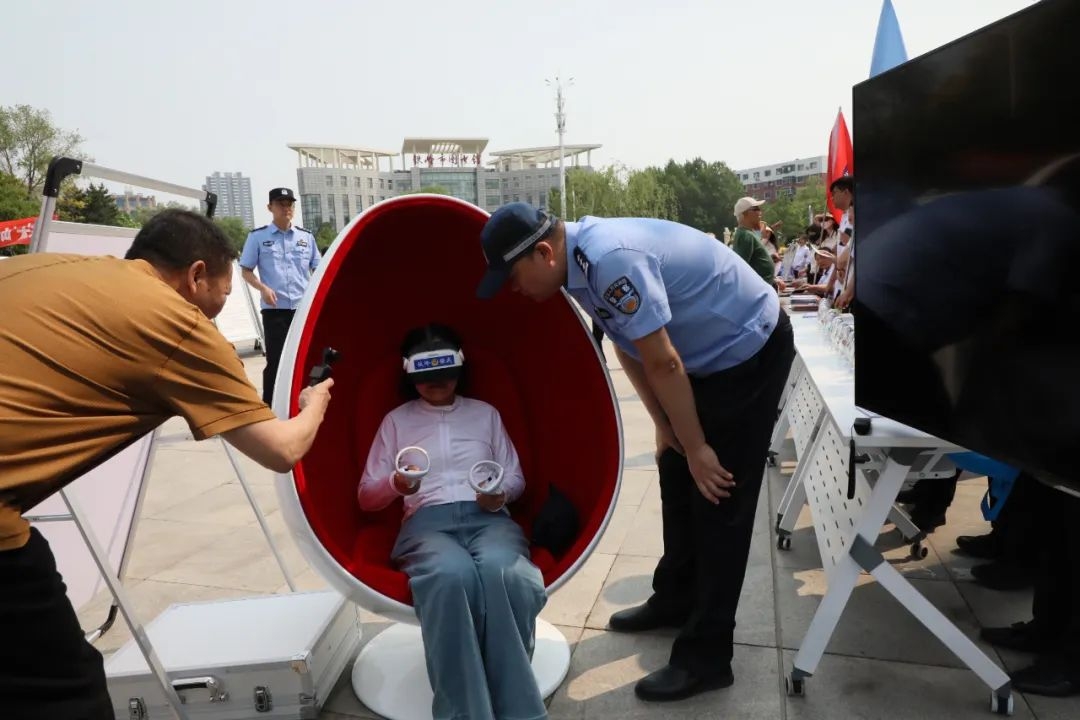 铁岭市强制隔离戒毒所的展区成为一大亮点。民警利用VR眼镜为体验者模拟吸毒后的体验,通过沉浸式的视觉冲击,让参与者直观感受到毒品的巨大危害。同时,结合毒品仿真样品,详细介绍各类毒品的外观特征、成瘾特性及危害,提升了群众辨别毒品的能力,有效增强了防范意识。