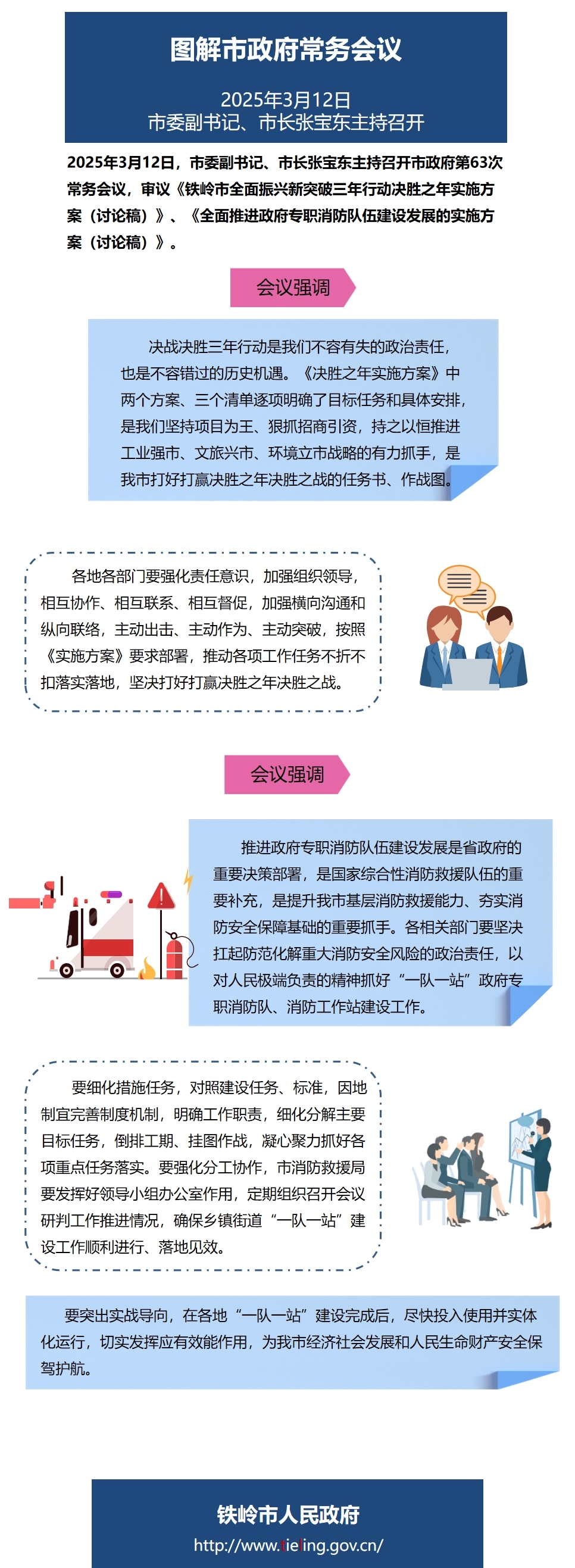 2025年3月12日,市委副书记、市长张宝东主持召开市政府第63次常务会议,审议《铁岭市全面振兴新突破三年行动决胜之年实施方案(讨论稿)》、《全面推进政府专职消防队伍建设发展的实施方案(讨论稿)》。