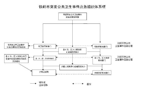 突发公共卫生事件发生后,市政府根据市卫生局的建议和突发公共卫生事件应急处理需要,成立全市突发公共卫生事件应急处理指挥部。市政府主管领导担任总指挥,市政府主管副秘书长、市卫生局局长担任副总指挥,负责对全市突发公共卫生事件的统一领导和统一指挥,做出处理突发公共卫生事件的重大决策。指挥部成员单位根据突发公共卫生事件的性质和应急处理工作的需要确定,主要有市卫生局、市委宣传部、市外办、市发改委、市教育局、市科技局、市公安局、市民政局、市劳动保障局、市财政局、市交通局、市信息产业局、联通铁岭分公司、网通铁岭分公司、移动铁岭分公司、市经委、市动监局、市商业局、市外经贸局、市林业局、市环保局、市物价局、市出入境检验检疫局、市食品药品监督管理局、市旅游局、市爱卫会、市红十字会、沈阳车务段铁岭车站、开原车站、昌图车站、铁岭军分区卫生部、武警铁岭市支队等。