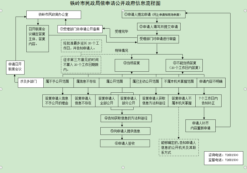 根据《条例》第十条、第二十七条、第二十八条等有关规定,铁岭市民政局依法受理政府信息公开申请,具体承办部门为铁岭市民政局机关党委支办公室。
