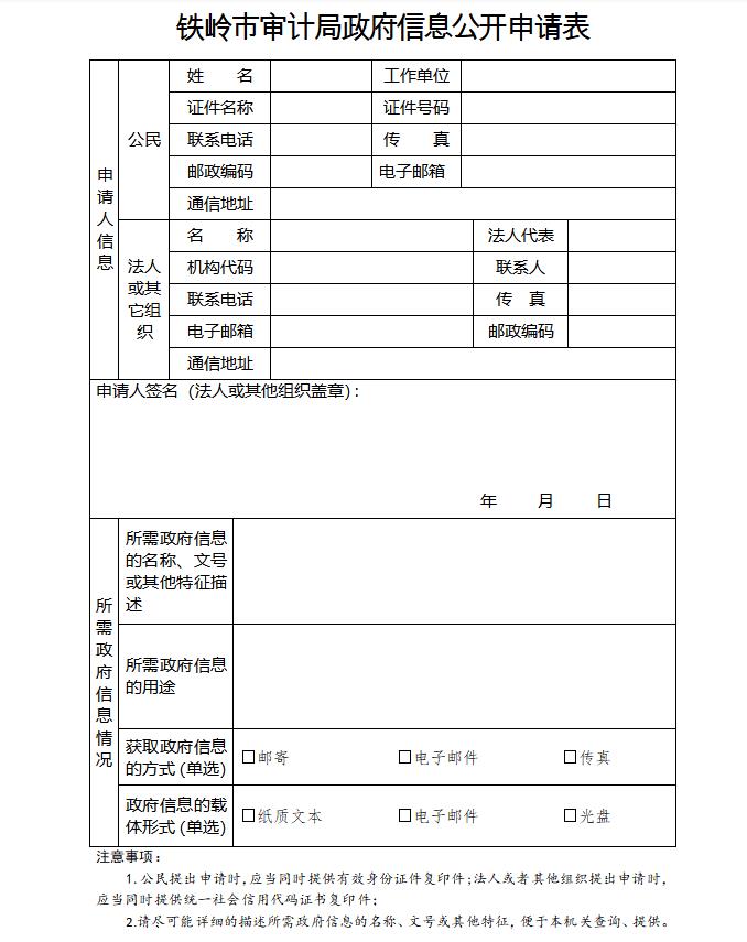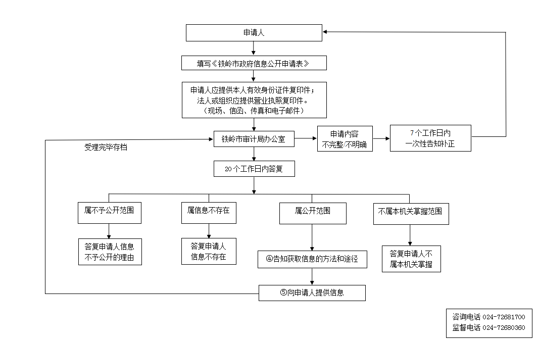 铁岭市审计局办公室依法受理向铁岭市审计局提出的政府信息申请。