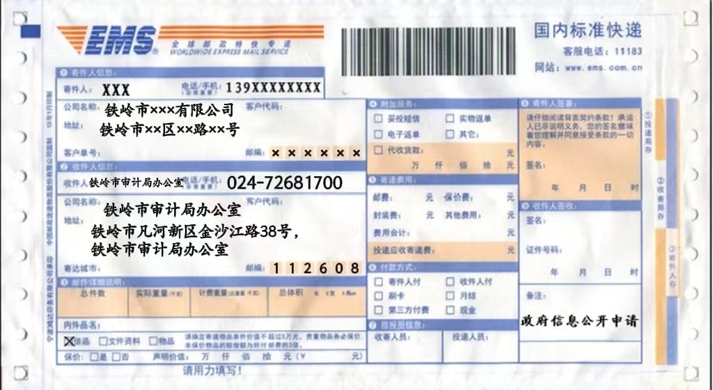 申请人可以通过信函方式提出申请。在信封显著位置注明“政府信息公开申请”字样,邮寄至铁岭市审计局办公室。信函应通过中国邮政的挂号信或EMS特快专递邮寄,不受理快递文件形式的申请。