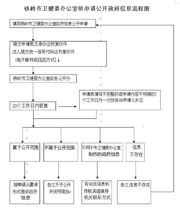 公民、法人或者其他组织(以下简称申请人)可申请公开铁岭市卫生健康委主动公开以外的卫生健康政务信息。委办公室在公开卫生健康政务信息前,依照《中华人民共和国保守国家秘密法》以及其他法律、法规和国家有关规定对拟公开的卫生健康信息进行审查。