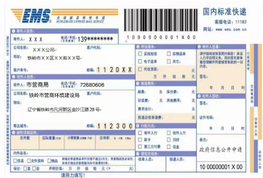 申请人可以通过信函方式提出申请。在信封显著位置注明“政府信息公开申请”字样,邮寄至铁岭市营商环境建设局办公室。信函应通过中国邮政的挂号信或EMS特快专递邮寄,不受理快递文件形式的申请。